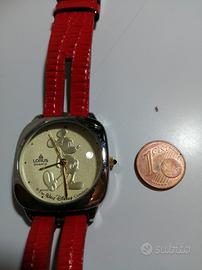 OROLOGIO AL QUARZO LORUS LR3008 JAPAN WALT DISNEY SUL QUADRANTE DELLE LANCETTE È RAPPRESENTATA LA FIGURA DI TOPOLINO OROLOGIO FUNZIONANTE CON CINTURINO ROSSO IN PELLE CON SCRITTA INTERNA SU UN LATO LORUS L'ALTRO LATO CON SCRITTA GENUINE LEATHERMAN MADE BACKING CHINA IMPRESSO SEMPRE SUL CINTURINO IL COSTO DELL'OROLOGIO È DI 60 EURO pagamenti bonifico o Poste pay preferibile ritiro a mano NO PERDITEMPO