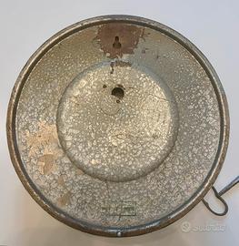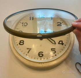 Vendo orologio a da parete Italiano, marchio Veglia, probabile anni 30-40, funzionante, con chiave per ricarica manuale, in condizioni molto buone. Presenta i suoi segni del tempo, ma il vetro, la chiave e la struttura metallica sono coeve, prive di riparazioni e conservate benissimo. Alcuni numeri nel quadrante sono leggermente sbiaditi dal tempo, ma possono esser restaurati e riportati a nuovo. L’orologio, pezzo di fattura molto particolare, si adatta perfettamente in un contesto di modernariato, in un ambiente in stile shabby chic, country chic o vintage.