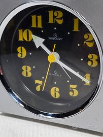 sveglia vintage Garant Space Age prodotta in Giappone negli anni '70. Scocca cubica in plastica con quadrante rotondo. con numeri arabi a rilievo e movimento meccanico a 2 rubini.Tipico esempio di design "Space Age" del'epoca in buone condizioni e funzionante