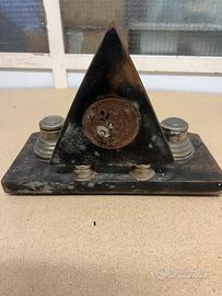 Orologio triangolare da scrivania vintage con calamai. Da restaurare.