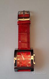 Elegante orologio da polso Altanus Geneve con cassa rettangolare e cinturino in pelle rossa.