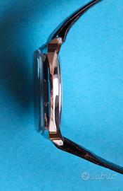 Raro orologio vintage originale unisex Enicar Revelation, a carica manuale, con datario, come nuovo, non usato e non indossato, con cinturino in pelle originale Enicar. Cassa in acciaio con etichetta originale sul fondello. Splendido orologio, realizzato negli anni ‘70 da Enicar, famosa azienda svizzera che ha realizzato orologi con Adolph Schild, Valjoux, Lemania, nota soprattutto per i propri movimenti AR interni che offrivano un orologio di alta qualità a un prezzo ragionevole. La cassa ha una larghezza di 30 mm esclusa la corona (originale con logo Enicar) ed un’altezza di 28 mm; orologio di spessore 8 mm. Bellissimo quadrante di tonalità argento nella zona centrale e blu lungo il contorno. A corredo, scatola originale Enicar in buone condizioni. Prezzo non trattabile.