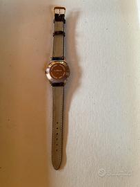 In vendita splendido orologio svizzero Lanco, risalente alla fine degli anni '50 / inizio anni '60, un classico intramontabile per gli amanti del vintage meccanico. L'orologio si distingue per il suo ricercatissimo quadrante con lavorazione a nido d'ape (Honeycomb), una caratteristica tecnica ed estetica molto apprezzata dai collezionisti, che dona profondità e riflessi unici sotto la luce. Caratteristiche Principali: Movimento: Meccanico a carica manuale (a corda), calibro svizzero di alta qualità a 17 rubini. Quadrante: Originale color champagne/panna con trama "honeycomb", numeri arabi e indici dorati applicati. Funzioni: Piccoli secondi (sub-second) posizionati a ore 6. Cassa: Design classico con anse eleganti. Diametro tipico dell'epoca che lo rende perfetto sia per uomo che per un uso unisex moderno. Condizioni: L'orologio è funzionante. Esteticamente si presenta in buone condizioni vintage, con lievi e naturali segni di usura sulla cassa che ne testimoniano l'originalità e la storia. Vetro pulito e quadrante ben conservato. Cinturino: In pelle marrone con stampa cocco, perfettamente abbinato allo stile dell'orologio.