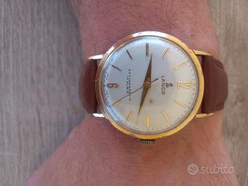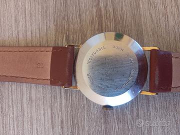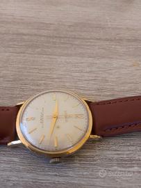 Splendido orologio vintage firmato Lanco, storica manifattura svizzera (Langendorf Watch Co.), risalente indicativamente agli anni '50/'60. Un pezzo classico ed elegante, perfetto per chi ama lo stile "dress watch" d'epoca. Caratteristiche Principali: Marca: Lanco Movimento: Meccanico a carica manuale (Swiss Made). Rubini: 17 Rubis (garanzia di precisione e durata del movimento). Quadrante: Color champagne/argento con una bellissima patina del tempo. Indici a bastone dorati applicati e numeri arabi alle ore 12 e 6. Funzioni: Ore, minuti e secondi centrali. Scritta "Antimagnetic" sul quadrante. Cassa: Placcata oro (con segni di usura che ne testimoniano l'autenticità e il fascino vintage). Fondello: In acciaio inossidabile ("Fond Acier Inoxydable") con chiusura a scatto. Cinturino: In pelle marrone, nuovo/in ottime condizioni (misura 18mm). Condizioni: L'orologio è funzionante. Esteticamente presenta i normali segni del tempo dovuti all'età: La placcatura della cassa mostra alcuni punti di usura (visibili in foto sui bordi e sulle anse). Il quadrante presenta una leggera e affascinante fioritura (patina vintage) che non ne pregiudica la lettura. Vetro in buone condizioni con micro-graffi quasi invisibili. Nota per i collezionisti: Essendo un orologio d'epoca, non ne è garantita l'impermeabilità.