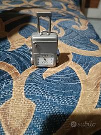 Questo è un mini orologio sveglia da viaggio a forma di valigia, probabilmente al quarzo.