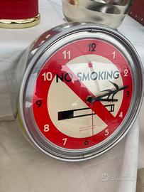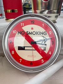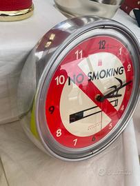 Orologio da parete di design anni 2000 No Smoking in alluminio satinato con vetro bombato,in ottime condizioni e perfettamente funzionante.