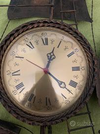 Vendo orologio da parete vintage artigianale in metallo lavorato con finitura effetto rame anticato, realizzato a forma di veliero a tre alberi. Un oggetto d’arredo scenografico e originale, ideale per ambienti rustici, case al mare, taverne o collezionisti di oggetti in stile marinaro.