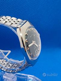 Vendo dalla mia collezione orologio Zentra di fabbricazione tedesca con origini a Berlino anni 20 . la cassa è in acciaio ,quadrante blu con sfere bordare di rosso . Ottimo movimento Puw tedesco ,funziona perfettamente ha un diametro esclusa corona di 36 mm.