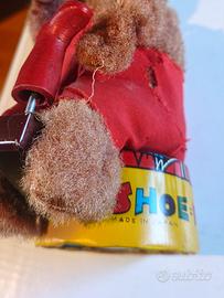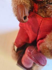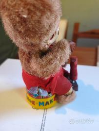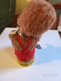 Orsetto carica a molla funzionante. Simula il movimento del battere il martello e dondola la testa. Condizioni come da foto manca il martello e il braccetto sinistro non ha la mano. Condizioni generali comunque buone e meccanismo in perfette condizioni. Un leggero restauro e lo rendono un pezzo molto bello e collezionabile.