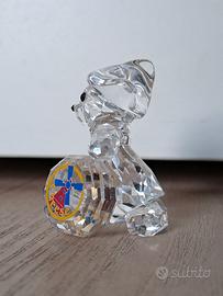 Orsetto Kris casara Kaatje serie "International Kris Bear Collection"; nazione Olanda. Vintage, articolo 884451 fuori produzione dal 2007, in cristallo trasparente, siglato con cigno. Indossa zoccoli e cappello tradizionali. Occhi e naso neri. La forma di formaggio presenta il disegno colorato di un mulino a vento e la scritta 'Cheese'. Dimensioni: 3,3x3x4,3. E' stata esposta in vetrinetta, ma in ottime condizioni. NO scatola originale.