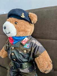 Orsetto di peluche in divisa militare con basco, mostrine originali, bottoni in metallo.