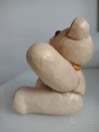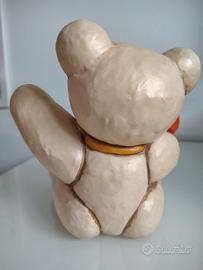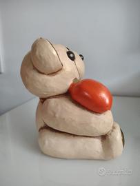 THUN Teddy Originale con Tulipano e Cuore Oro – H 14,5 cm Descrizione Vendo splendida statuina originale Thun, l'iconico orsetto Teddy in una versione molto dolce e ricercata. Il pezzo raffigura il Teddy che stringe un tulipano rosso e presenta un elegante cuore dorato sul petto. Marca: Thun (originale, con marchio impresso e bollino giallo sul fondo). Dettagli: Rifiniture in oro zecchino su orecchie, zampe e cuore. Dimensioni: Altezza circa 14,5 cm. Materiale: Ceramica decorata a mano. Stato: Ottime condizioni,come da foto. Senza sbeccature o crepe. Prezzo: 40€ non trattabile