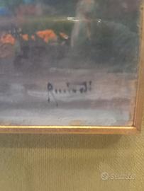 Oscar Ricciardi. 24/ Febbraio 1864/ Napoli 1935. Pittore tra 800/900. Piccola opera su tavoletta. Olio. Raffigurante Mercato Napoletano con personaggi, misura con cornice cm 23 x 28. + Vetro. Firma in basso. Ricciardi. Info. 340. 86.02.771. Vincenzo.