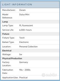 introvabile lampadina tascabile Osram Mini Deluso, funziona con 2 pile stilo 1,5 volt.