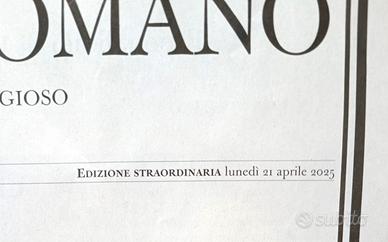 Edizione Straordinaria de L'Osservatore Romano, Morte Papa Francesco, 21 aprile 2025 Originale Nuovo mai sfogliato