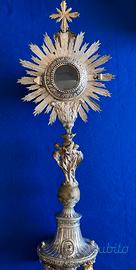 ostensorio in argento antico, è stato effettuato il test ma non è possibile stabilire la percentuale. Presenta una bella patina (volutamente non è stato lucidato) e i segni del tempo che ne accrescono il fascino.