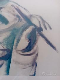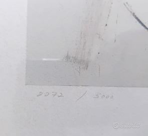 Riproduzione ufficiale e autenticata dell’opera Le Jeune Peintre (1972) di Pablo Picasso, realizzata in tiratura limitata di 5000 esemplari e stampata su carta Velin d’Arches. Questo è l'esemplare n. 2272 / 5000. Le diciture che compaiono sul poster: "Imprimé spécialement sur Veline d'Arches" significa che si tratta di una carta di altissima qualità, prodotta in Francia, usata per stampe d'arte. Non è un poster commerciale. "Par les Éditions de la Réunion des Musées Nationaux à Paris", è l'editore ufficiale dei musei francesi. Le Réunion des Musées Nationaux (RMN) è un ente governativo francese che produce riproduzioni autorizzate. La "World Treasure Society" era un'organizzazione culturale americana che commissionava riproduzioni artistiche. "S.P.A.D.E.M. Vaga New York 1980" era la società francese per la protezione del diritto d'autore degli artisti, tra cui Picasso. Queste informazioni indicano che la riproduzione è legale, approvata dagli eredi di Picasso e protetta da copyright. L’anno di realizzazione del poster è il 1980, praticamente 8 anni dopo l'opera originale. La stampa è stata eseguita da I.M.L. (Imprimerie Moderne du Livre) a Parigi, specializzata in stampa artistica. L'opera ha anche un timbro di autenticità impresso nella carta. Le Jeune Peintre raffigura un giovane pittore intento nel suo lavoro, interpretata con lo stile tipico del Picasso degli anni ’70. Dimensioni: 77 x 53 cm. Condizioni buone anche se ovviamente porta i segni del tempo (leggero ingiallimento e qualche altra imperfezione). Il poster è già incorniciato con cornice a giorno originale degli anni '80, coeva con la pubblicazione. Per altre foto chiedere.