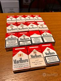 Lotto di pacchetti di sigarette vuoti, tutti Marlboro. 54 pezzi assortiti, tutti visibili in foto. La maggior parte italiani