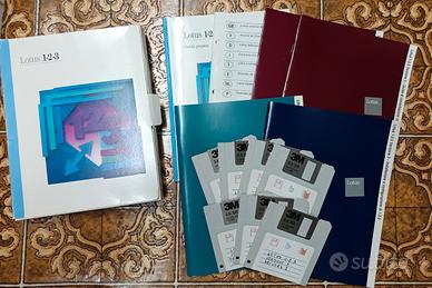 Pacchetto Lotus 1.2.3 versione 3, completo di manuali e 7 floppy disk