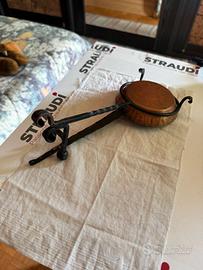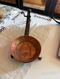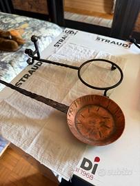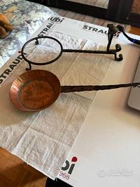 Vendo Padellino in Rame con manico in Ferro battuto. Un pezzo di collezione o un oggetto decorativo in stile Rustico. Antico gancio in ferro battuto, forgiato a mano con finitura scura o antica. Vintage o rustico adatto ad arredamento d'epoca o stile casale.