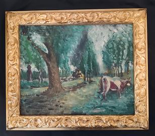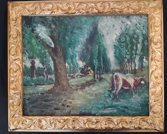 Paesaggio post-impressionista dipinto olio su tela epoca prima metà del novecento.