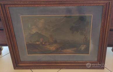 paesaggio campestre, olio su compensato ,misure del dipinto: 50X36 cm; con la.cornice 72x58; sul retro del dipinto è incollata l'etichetta originale in lingua inglese con il nome del produttore della tela usata