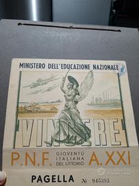 Pagella scolastica Regno d'Italia 1942/1943. Era fascista. Per collezionisti In buone condizioni Misura cm 17,5 x 25