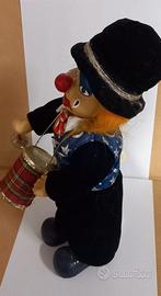 Pagliaccio con tamburo, giocattolo vintage. Scheletro in legno, ben rivestito con stoffe assortite.