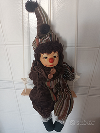 Pagliaccio sull'altalena con capo di porcellana e abito in tessuto. Altezza 76cm (con altalena), 57cm (senza altalena), larghezza 26cm. Nuovo ?30. Contattare tramite subito o via sms/whatsapp al 3248986120.