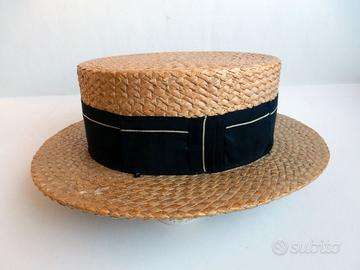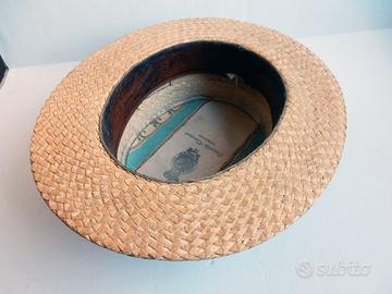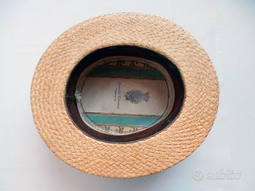 Taglia 57, calotta interna cm 19,5 x 16, altezza della calotta cm 9, tesa costante di cm 5,5.