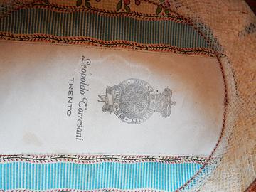 Di fattura italiana anche se sulla fodera del fondo è presente uno stemma con diciture in inglese, venduta da Leopoldo Torresani che all'epoca aveva il negozio in via San Pietro a Trento.