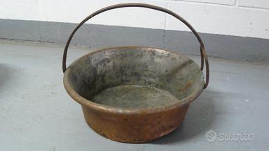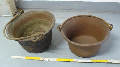 paioli in rame di cui 2 pentole e una padella per risotto di fattura lombarda fine '800 ben conservati (vendita in blocco) prezzo da definire