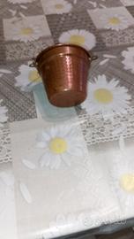 Piccolo paiolo in rame con un manico in metallo dorato. Ideale come soprammobile o portaoggetti.
