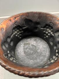 Paiolo pesante in rame vintage con fini decorazioni diameteo 28cm h 15cm