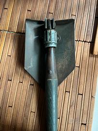 Pala militare pieghevole originale, in metallo, con sistema di blocco a vite.