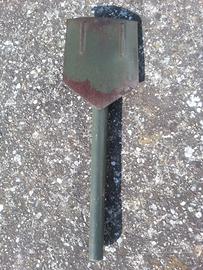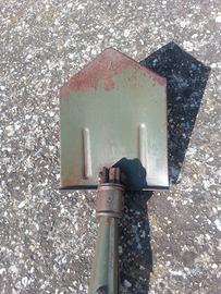 Vendo pala / vanga da trincea pieghevole, originale, risalente probabilmente alla 2a guerra, (anni '40), realizzata in ferro e legno smaltato verde/grigio ;