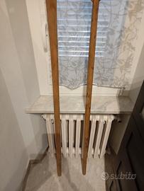 Coppia di pale antiche in legno massiccio, alte 2 metri, realizzate artigianalmente e probabilmente utilizzate in contesti tradizionali per la lavorazione di impasti o la gestione di forni a legna. Le due pale presentano forme diverse: una più larga e arrotondata, l’altra più stretta e slanciata, segno di un uso funzionale e specifico.