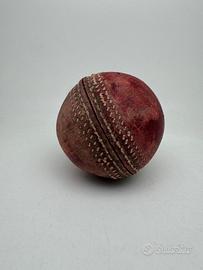Affascinante palla da cricket d’epoca, risalente verosimilmente agli anni ’20, realizzata in pelle naturale cucita a mano, secondo la tecnica tradizionale utilizzata all’epoca per questo tipo di articoli sportivi.