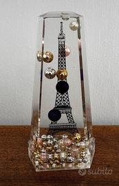 A forma di Tour Eiffel con all’interno sagoma della Tour Eiffel di colore nero con palline di colore oro, argento, rosa e viola