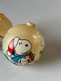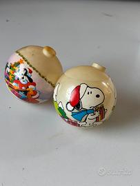 Un pezzo di storia per collezionisti. Coppia di palline natalizie in plastica: l'introvabile Snoopy (prima licenza UFS 1958) e l'iconico Paperino