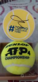Pallina da tennis e pallina gommosa autografati dal grande tennista italiano Lorenzo Musetti a Torino in occasione degli Atp Finals 2025