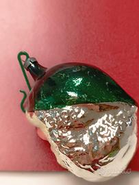 palline di Natale vintage raffigurante Babbo Natale in verde e argento in vetro Mercurio non ha difetti.