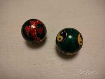 Sfere di Baoding o sfere per la salute o sfere da meditazione cinesi. Strumento per l'esercizio delle mani, il rilassamento e la terapia antistress. Producono un suono simile a un campanello metallico ( tintinnio ) quando vengono fatte ruotare.