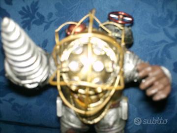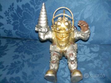 Bella statuina di circa 18 cm di un palombaro particolare dotato di trivella . Il materiale di cui è composto credo che sia resina ed è pesante .