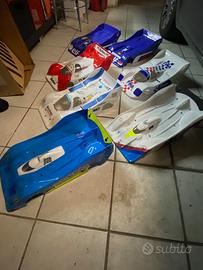 Pan car C8 sr pronta pista. Motore hobbywing 4268 g3 2000kv, altro motore hobbywing 4268 g2 1900 kv, regolatore hobbywing XR8 Pro, servo dello sterzo, 3 corone di ricambio nuove, piastre avantreno superiore e inferiore di ricambio fatte in vetronite (indistruttibili), telaio di ricambio, paraurti di ricambio, cinghia di ricambio, 7 carrozzerie di cui 4 nuove, numerosissime gomme (anteriori e posteriori. 4 batterie da 8000 e 4 da 10000. Transponder non compreso. Per altre foto e informazioni non esitate a chiedere.