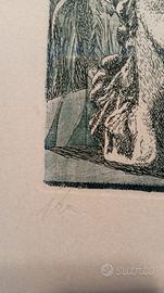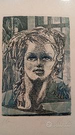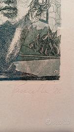 In vendita preziosa incisione originale del celebre scultore e incisore Vito Pancella (1945-2005), datata 1986 e firmata a matita dall'artista. L'opera è una P.A. (Prova d'Autore), una dicitura che identifica gli esemplari più esclusivi, solitamente riservati all'artista stesso o ai collaboratori, rendendola particolarmente ricercata dai collezionisti rispetto alla normale tiratura numerata. Il soggetto è un volto femminile di squisita fattura classica. Il fitto tratteggio incrociato crea un effetto chiaroscurale che richiama la plasticità delle celebri sculture in bronzo del maestro abruzzese. Dettagli tecnici: Artista: Vito Pancella (firmata e datata a matita) Esemplare: P.A. (Prova d'Autore) Tecnica: Incisione su carta (Acquaforte) Misure incisione: 8 x 12 cm Misure cornice: 22 x 27 cm Stato: Ottimo stato di conservazione. Cornice in legno inclusa, pronta per essere appesa. Un'opera di grande eleganza e valore artistico, ideale per un regalo di classe o per arricchire una collezione di grafica d'autore del '900 italiano. Spedizione: Disponibile con TuttoSubito o ritiro a mano zona Roma/Napoli