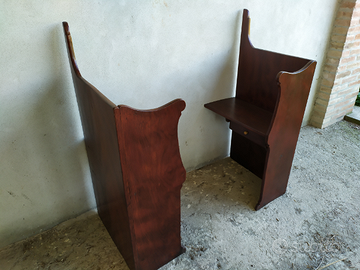 Panche di legno da camino destra e sinistra intagliate con cassetto. Secolo xix