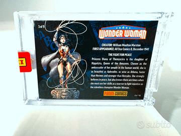 Card 3D metallica da collezione dedicata al gruppo della Justice League. Nello specifico: Wonder Woman (numero 3 di 9). Sigillato.