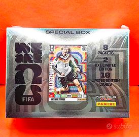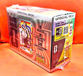 Confezione nuova sigillata. Scatola Speciale - SPECIAL BOX- Collezione Panini Adrenalyn XL edizione speciale FIFA World Cup 2026 trading card. Contiene: ✓ 8 bustine da 8 carte- 64 trading card ✓ 2 card XXL LIMITED EDITION formato grande ✓ 10 card Limited Edition