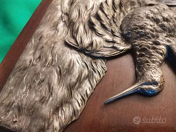 Vendo a prezzo d'occasione (causa sgombero appartamento) coppia di pannelli in legno massiccio e peltro, raffiguranti teste di cani da caccia con in bocca la selvaggina catturata.